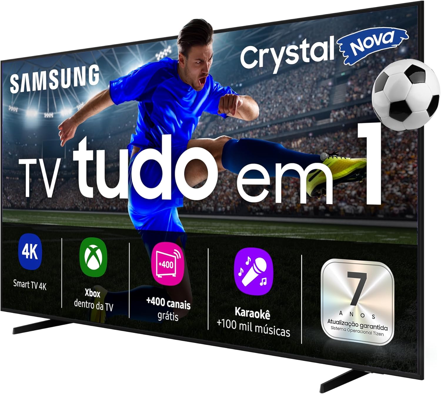 Processador Crystal 4K. Melhore a resolução do seu conteúdo para até 4K. O processador exclusivo da TV Samsung faz a otimização de seu conteúdo para até 4K de resolução, conforme a cena.